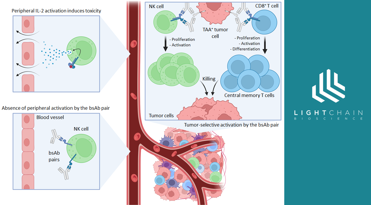 Selective activation of interleukin-2/interleukin-15 receptor signaling in tumor microenvironment using paired bispecific antibodies